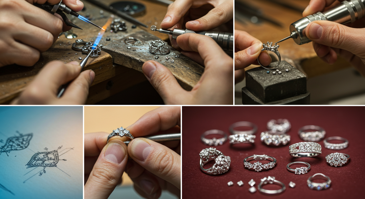 Each piece we create is the result of meticulous handcrafting by experienced artisans who treat every design as a unique work of art. Our workshop is a place where tradition and creativity meet — blending age-old jewellery-making techniques with fresh, modern aesthetics to produce truly distinctive pieces. Whether it's a custom engagement ring, a reimagined heirloom, or a bespoke necklace made to celebrate a life event, our focus is on turning ideas into wearable memories.